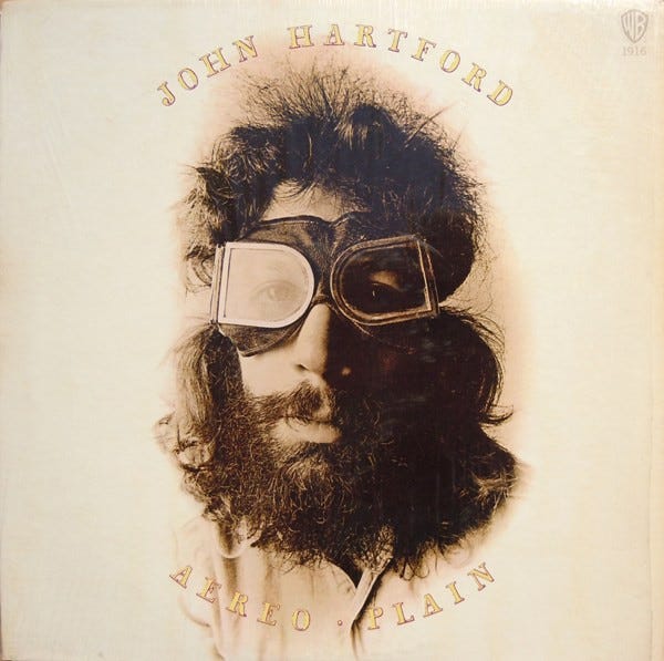 Besides Ry Cooder and David Bromberg, my Chicago folk singing friend also introduced me to the fiddle-playing tap dancer, John Hartford, who brought me a lot of comfort on my trip down the Mississippi River, which I wrote about here: