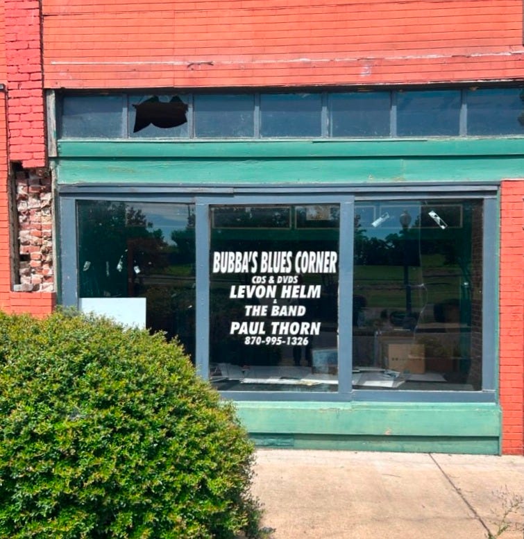 Around the corner from the Delta Cultural Center, I found Bubba’s Blues Corner, an epic record store, which appears to have never officially "closed down" in the traditional sense, but it sure looked closed to me when I looked in. I noticed the reference on the window to Levon Helm, the drummer and vocalist for The Band, who passed away back in 2012: